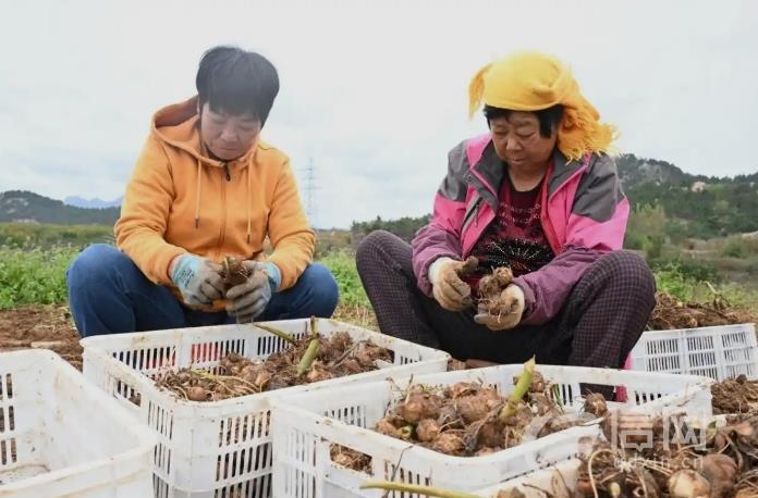 即墨區(qū)鰲山衛(wèi)街道姜家白廟村的農(nóng)民在地里清理芋頭的泥土。(來源:即墨區(qū)委宣傳部)