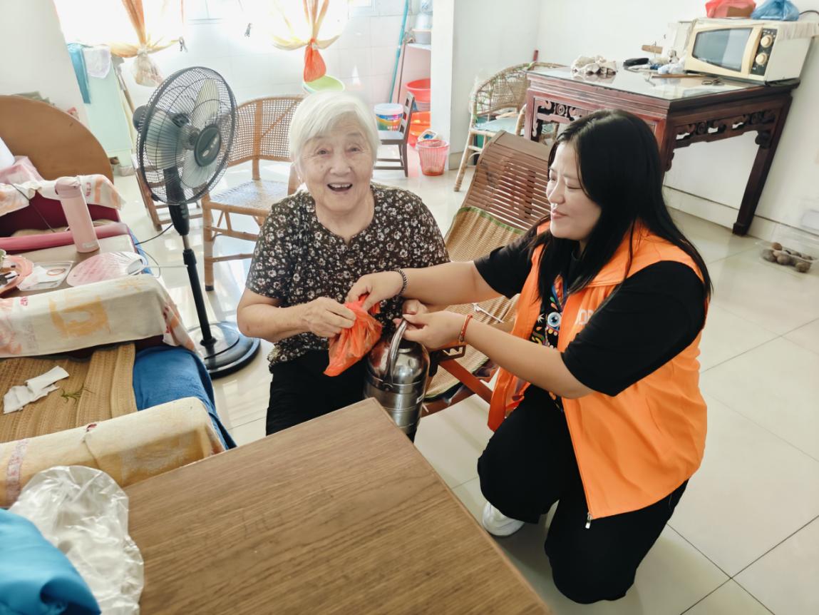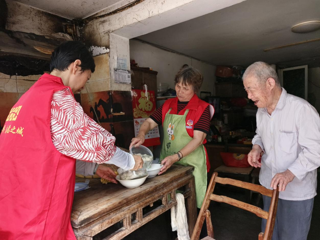 在光明新村,“鄰里小廚”飄出陣陣餛飩香。這不是普通的餐館,而是由居民合伙人姜阿姨牽頭運(yùn)營的公益廚房。她主動共享自家車庫作為“方寸間”,并發(fā)動幾位熱心鄰居,每周一次上門關(guān)懷轄區(qū)獨(dú)居、孤寡老人,送上親手制作的暖心餐食或水果物資。