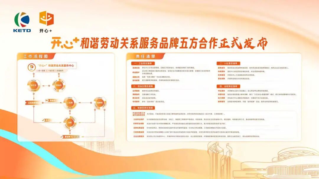 12月22日下午,開(kāi)發(fā)區(qū)總工會(huì)聯(lián)合市人民法院、人民檢察院和開(kāi)發(fā)區(qū)人社局、司法辦在開(kāi)發(fā)區(qū)職工活動(dòng)中心舉辦“開(kāi)心+”和諧勞動(dòng)關(guān)系服務(wù)品牌2.0版本發(fā)布儀式,打造“工會(huì)、人社、司法、法院、檢察”五位一體的工作新格局。2.0服務(wù)版本的推出,標(biāo)志著“開(kāi)心+”品牌實(shí)現(xiàn)從“三方聯(lián)動(dòng)”向“五位一體”躍升,實(shí)現(xiàn) “一站式受理、多元化調(diào)解、全流程服務(wù)”,構(gòu)建獨(dú)具特色的和諧勞動(dòng)關(guān)系新范式。