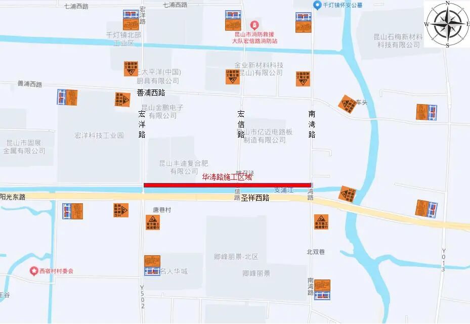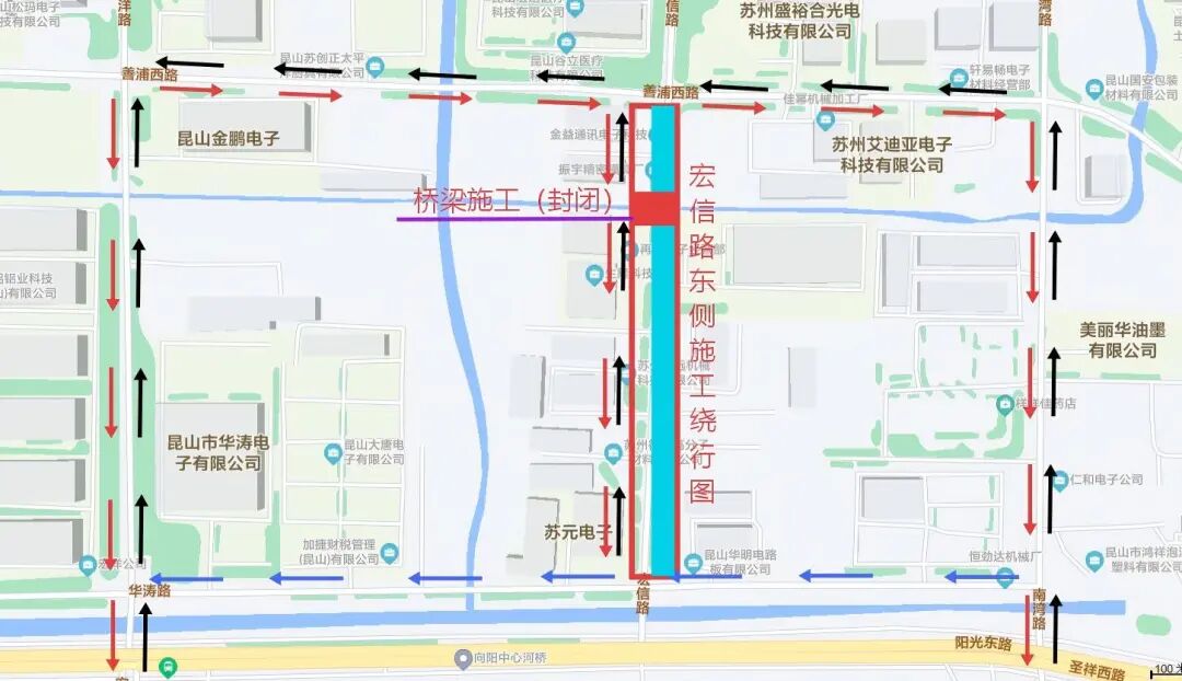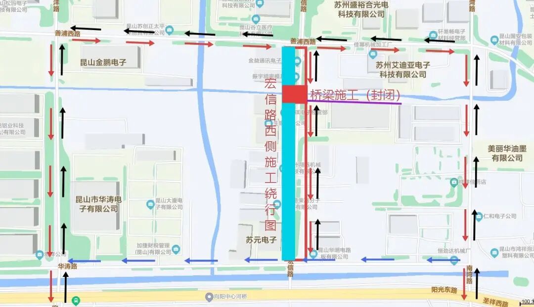 ▲宏信路東側(cè)道路封閉施工繞行圖