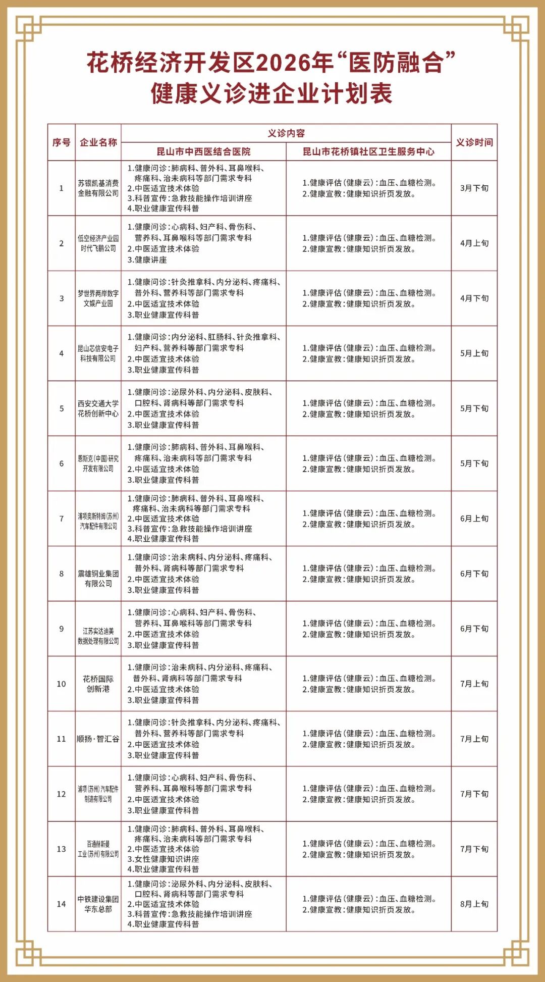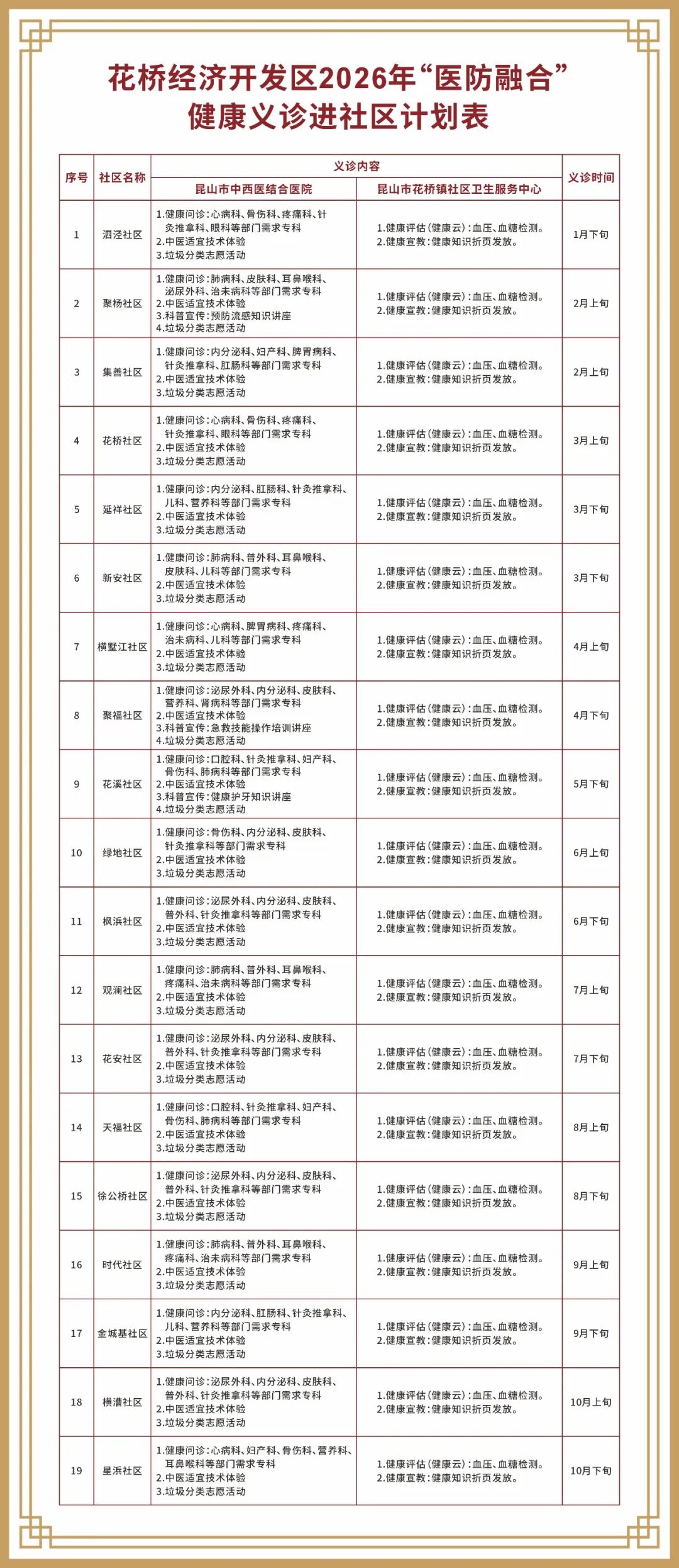 為進(jìn)一步深化“醫(yī)防融合”機(jī)制,提升基層防病治病與健康管理能力,昆山市中西醫(yī)結(jié)合醫(yī)院(花橋鎮(zhèn)社區(qū)衛(wèi)生服務(wù)中心)組建專業(yè)義診團(tuán)隊(duì),深入社區(qū)、企業(yè)開展健康義診服務(wù),2026年計(jì)劃舉辦43場義診與健康科普講座,引導(dǎo)居民樹立科學(xué)健康觀,倡導(dǎo)文明生活方式。