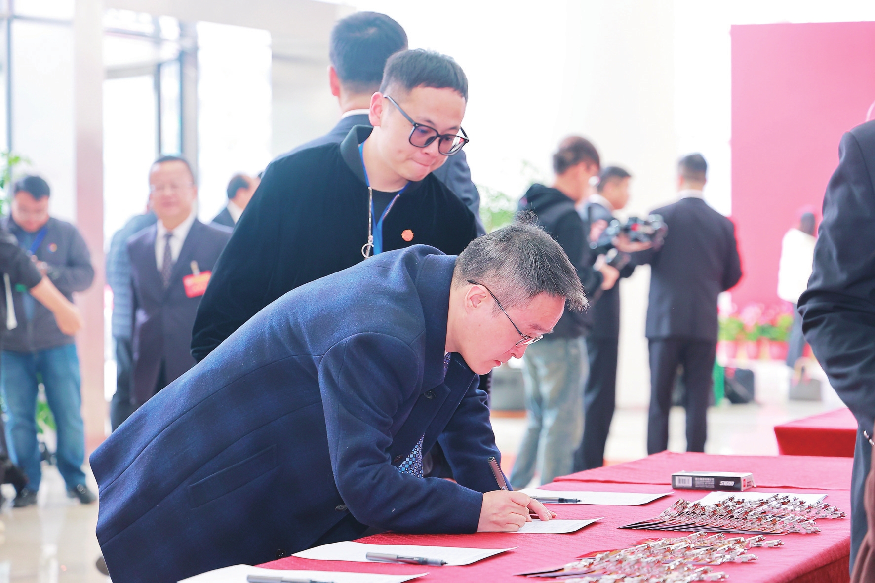 在工作人員的引導(dǎo)下,委員們有序完成報(bào)到手續(xù),領(lǐng)取會議材料。完成報(bào)到后,委員們迅速進(jìn)入履職狀態(tài),或圍坐在一起交流調(diào)研心得,或?qū)χ岚覆莞宸磸?fù)斟酌,或暢談對昆山發(fā)展的美好構(gòu)想,會場內(nèi)外處處洋溢著昂揚(yáng)向上、共謀發(fā)展的熱烈氛圍。