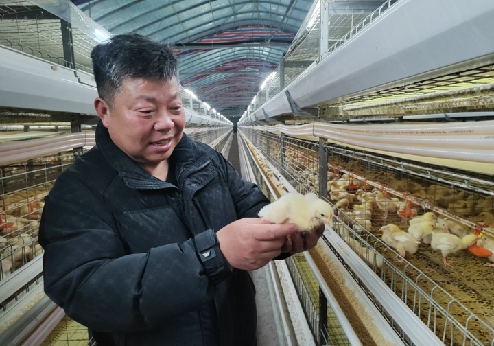 從清晨六點(diǎn)到深夜十點(diǎn),檢查溫濕度、調(diào)配飼料、添水清糞、觀察雛苗活躍度……趙榮兵的春節(jié)被這些忙碌而瑣碎的工作填滿,沒有親友團(tuán)聚的推杯換盞,唯有大棚內(nèi)恒定的暖意與雛苗的歡叫相伴?!澳懵牐@叫聲多有勁兒,等它們出欄了,鄉(xiāng)親們的工資就有了著落,村集體經(jīng)濟(jì)也能再添一筆?!彼驹陔u舍中央,望著滿棚探頭探腦的雛苗,眼里滿是期許,“守好這些‘致富苗’,就是守住了鄉(xiāng)村振興的希望,這個(gè)年過得值!”
