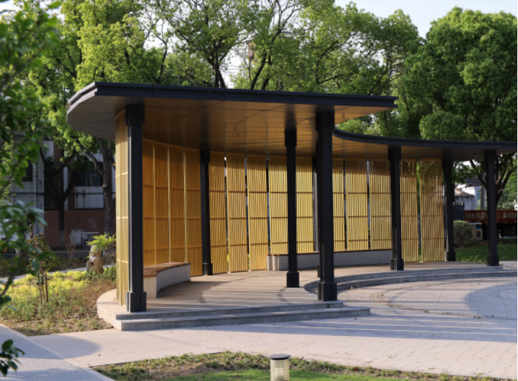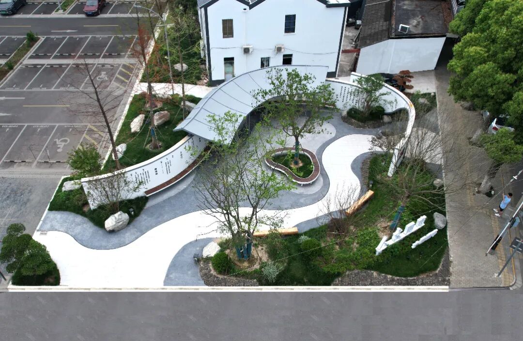 水墨廊亭借白墻墨韻勾勒人文記憶,墻間題刻承載鄉(xiāng)土情懷,成為融休憩、展示與社區(qū)交往于一體的文化節(jié)點。