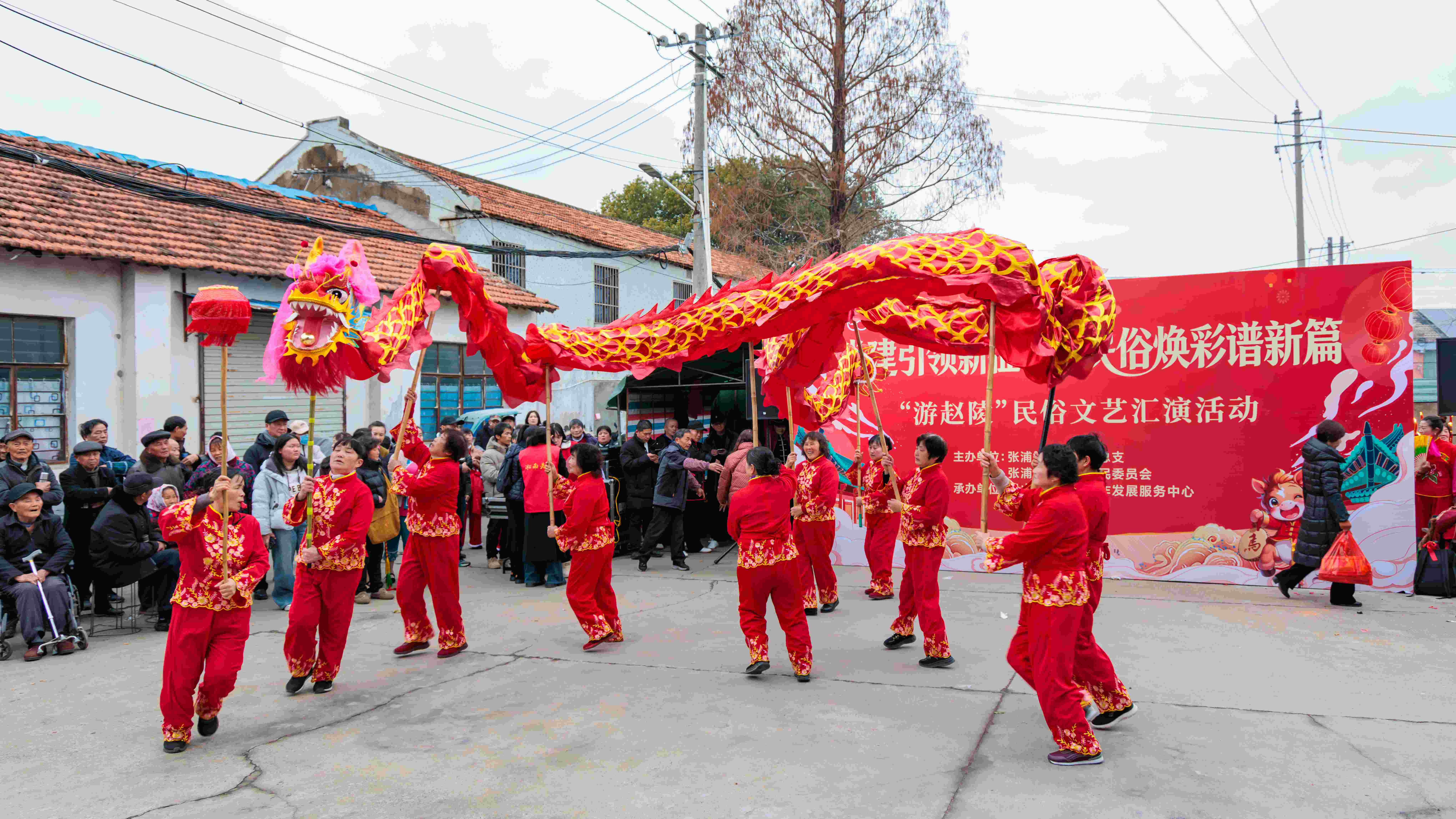 活動(dòng)在舞龍表演中拉開(kāi)帷幕。隨后,秧歌、腰鼓舞、挑花籃、打連廂、滬劇、太極、扇子舞等十多個(gè)節(jié)目輪番上演,既有傳統(tǒng)韻味,又充滿時(shí)代氣息,展現(xiàn)了趙陵村深厚的文化底蘊(yùn)和村民積極向上的精神風(fēng)貌。