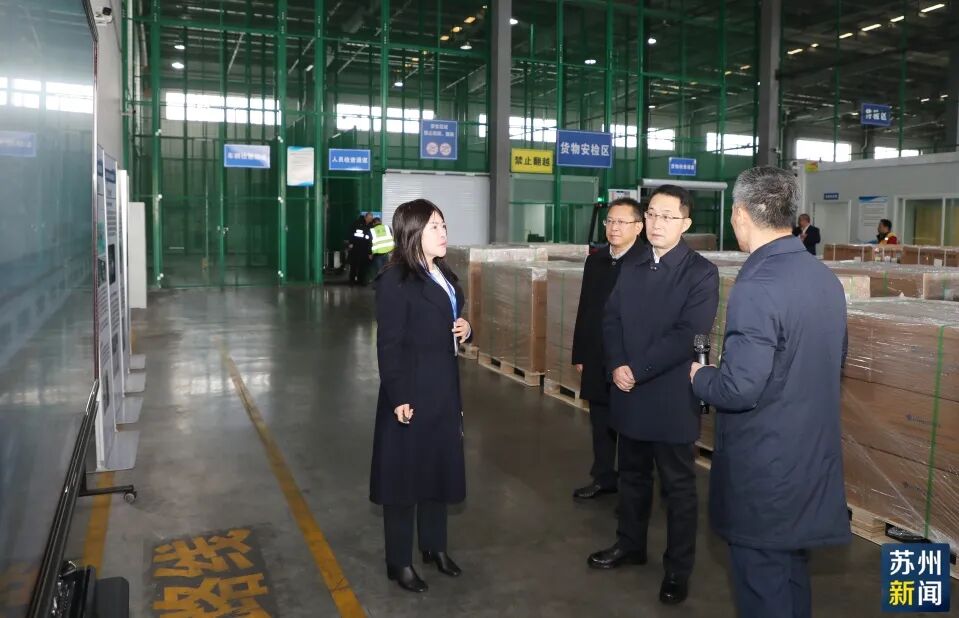 上海機(jī)場-蘇州前置貨站是全國首個跨省市、跨關(guān)區(qū)民航海關(guān)一體監(jiān)管的前置貨站,實現(xiàn)了航空貨物操作流程前置蘇州,“一次安檢、一次放行”。吳慶文實地察看貨站運(yùn)營情況,詳細(xì)了解貨物通關(guān)效率、物流成本節(jié)約成效等情況。他指出,要進(jìn)一步優(yōu)化跨關(guān)區(qū)監(jiān)管模式,提升航空物流集疏運(yùn)能力,助力企業(yè)更深度融入全球產(chǎn)業(yè)鏈供應(yīng)鏈。