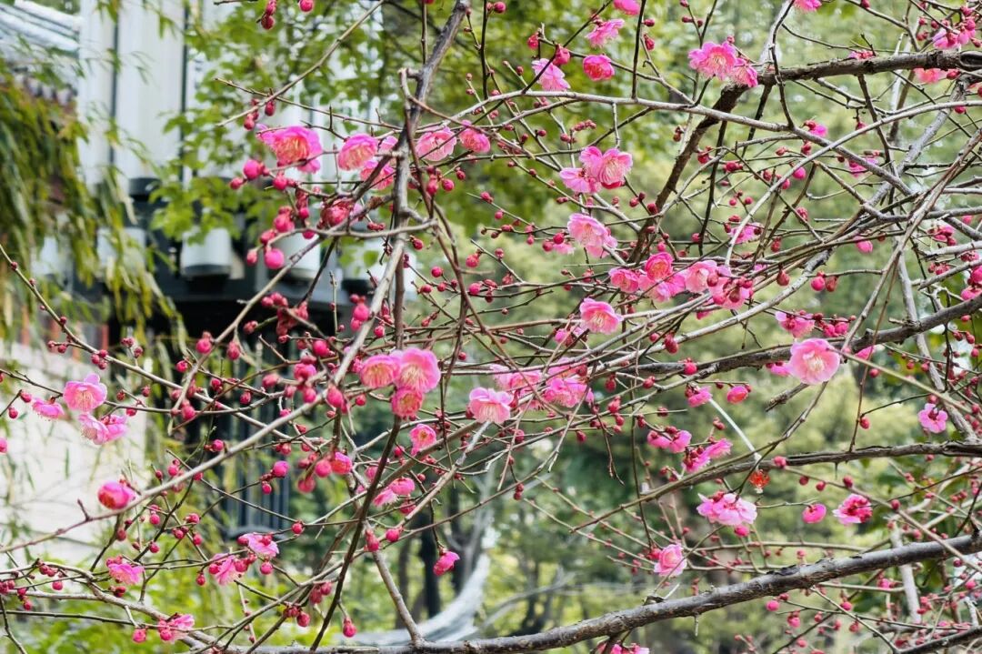 不同于往年側(cè)重“賞梅打卡”的熱鬧,今年花橋的紅梅,更像是城市生態(tài)肌理的生動(dòng)注腳——不只藏于園林深處的雅致,更綻放在煙火人間的縫隙里,既有江南草木的婉約清雅,又有都市生活的鮮活氣息。每一處點(diǎn)位,都藏著獨(dú)一份的景致與故事。