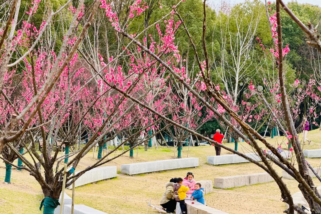 作為花橋核心區(qū)的城市“綠肺”,中央公園紅梅繁茂,形成片片粉色花林。緊鄰上海地鐵11號(hào)線光明路站,紅梅錯(cuò)落分布在步道兩側(cè),不少市民穿梭其間,駐足拍照,將枝頭春色與歡聲笑語(yǔ)一同定格。
