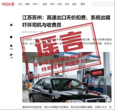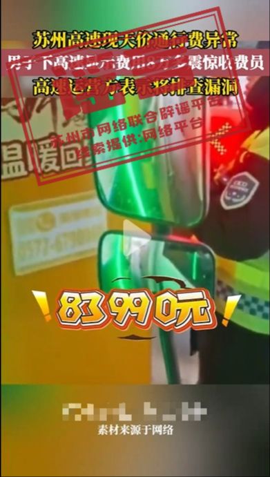 網(wǎng)傳“蘇州高速8萬余元天價(jià)通行費(fèi)異?!毕嚓P(guān)帖文,為不實(shí)信息