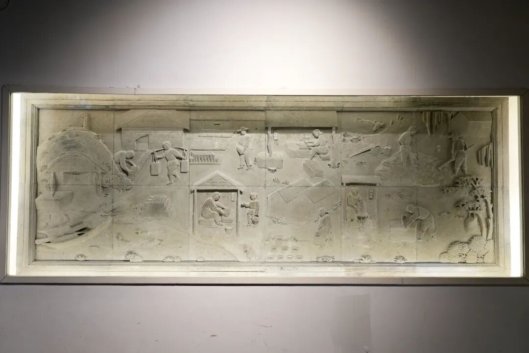 走近一看,一方被時(shí)光浸潤(rùn)的天地豁然展開(kāi):櫥窗中八吉紋磚、雙喜滴水瓦、鳳凰牡丹瓦當(dāng)靜默陳列,細(xì)密紋路里藏著水鄉(xiāng)建筑的肌理;墻邊往昔匠人的工具靜靜陳列,大泥弓、瓦轉(zhuǎn)盤(pán)、瓦桶模具一字排開(kāi),將時(shí)光拉回那個(gè)“青磚黛瓦是尋?!钡哪甏辉偻镒?,一摞摞磚瓦泥坯整齊排列,磚瓦小燒窯靜默佇立。常有游人興致盎然地了解工藝流程,感受“一磚一世界”的精湛技藝。