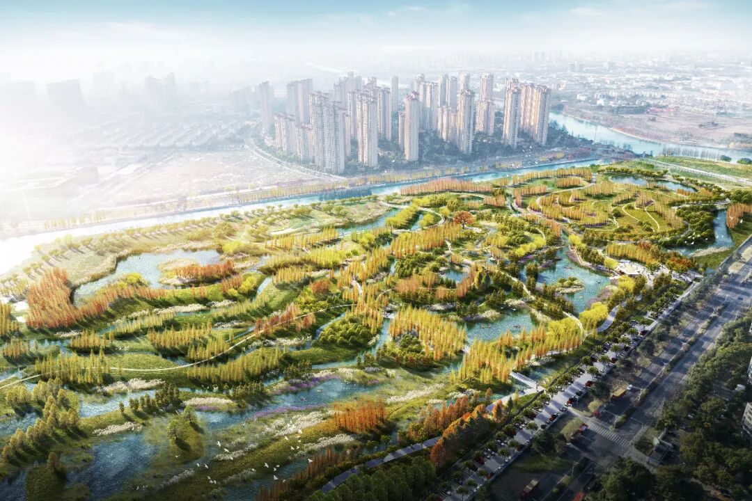 位于昆山開發(fā)區(qū)的太倉塘生態(tài)廊道與夏駕河景觀帶交會處,夏駕河北生態(tài)林帶涵養(yǎng)工程一期同樣令人期待。這片占地約780畝的生態(tài)林帶,將打造梯田杉林、活力廣場、水上森林等景觀節(jié)點,構建騎行與慢行相結合的二級環(huán)線,并規(guī)劃特色水杉大道,以水杉搭配水生植物豐富季相景觀。作為夏駕河科創(chuàng)走廊的重要節(jié)點和“昆山之鏈”的拓展段,項目還前瞻性規(guī)劃水上運動等業(yè)態(tài),力求將生態(tài)涵養(yǎng)、公園游憩與城市功能有機融合,打造一座集自然野趣與都市活力于一體的生態(tài)濕地公園。