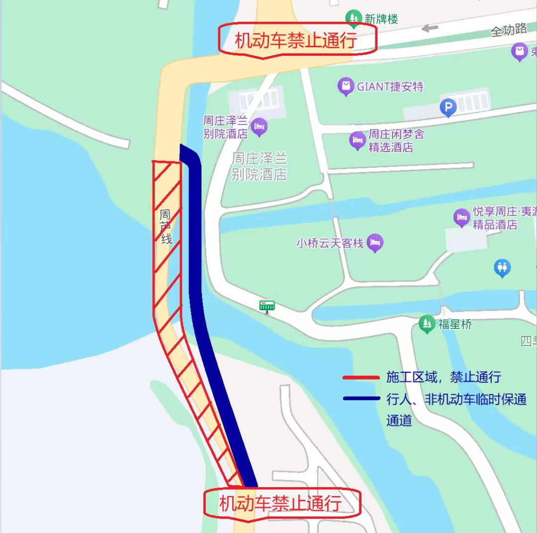 4月7日起,周莊鎮(zhèn)小木橋改造提升工程將正式施工,為保障施工順利進(jìn)行及周邊群眾出行安全,現(xiàn)將施工期間交通導(dǎo)行相關(guān)事宜通告如下,請廣大群眾提前做好規(guī)劃,合理繞行,施工期間給您帶來不便,敬請諒解。