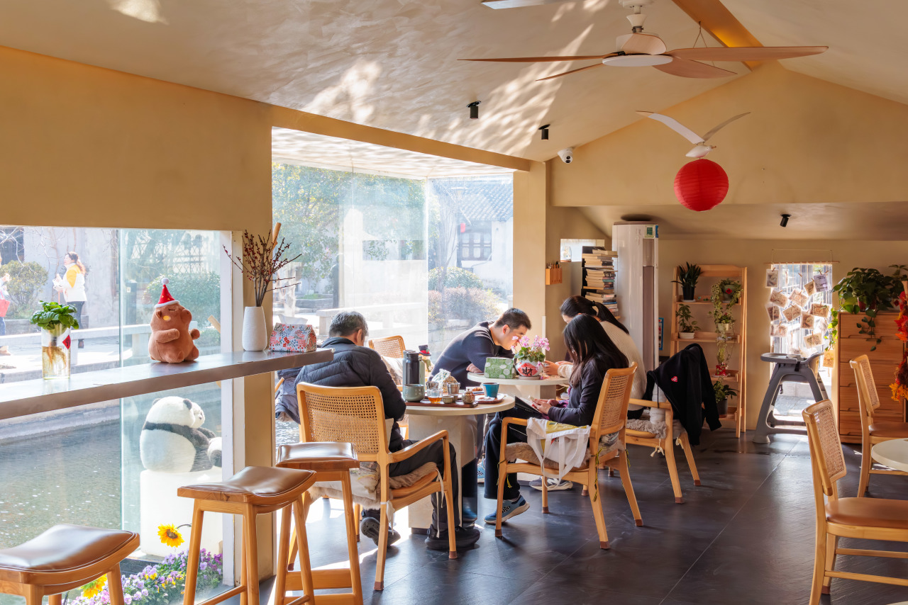 更讓村民津津樂道的是,他定下一條“硬規(guī)矩”:入駐項目優(yōu)先吸納本地村民就業(yè)。60歲的畢桂珍就是受益者之一。如今,她在“村咖”內做服務員,每天在古樹花木間忙碌,每月增收3800多元?!耙郧伴e在家里沒事干,心里空落落的?,F(xiàn)在在家門口上班,工資不少,還能照顧家里,心里踏實多了?!碑吂鹫湟贿叢磷雷右贿呅χf,臉上洋溢著滿足。